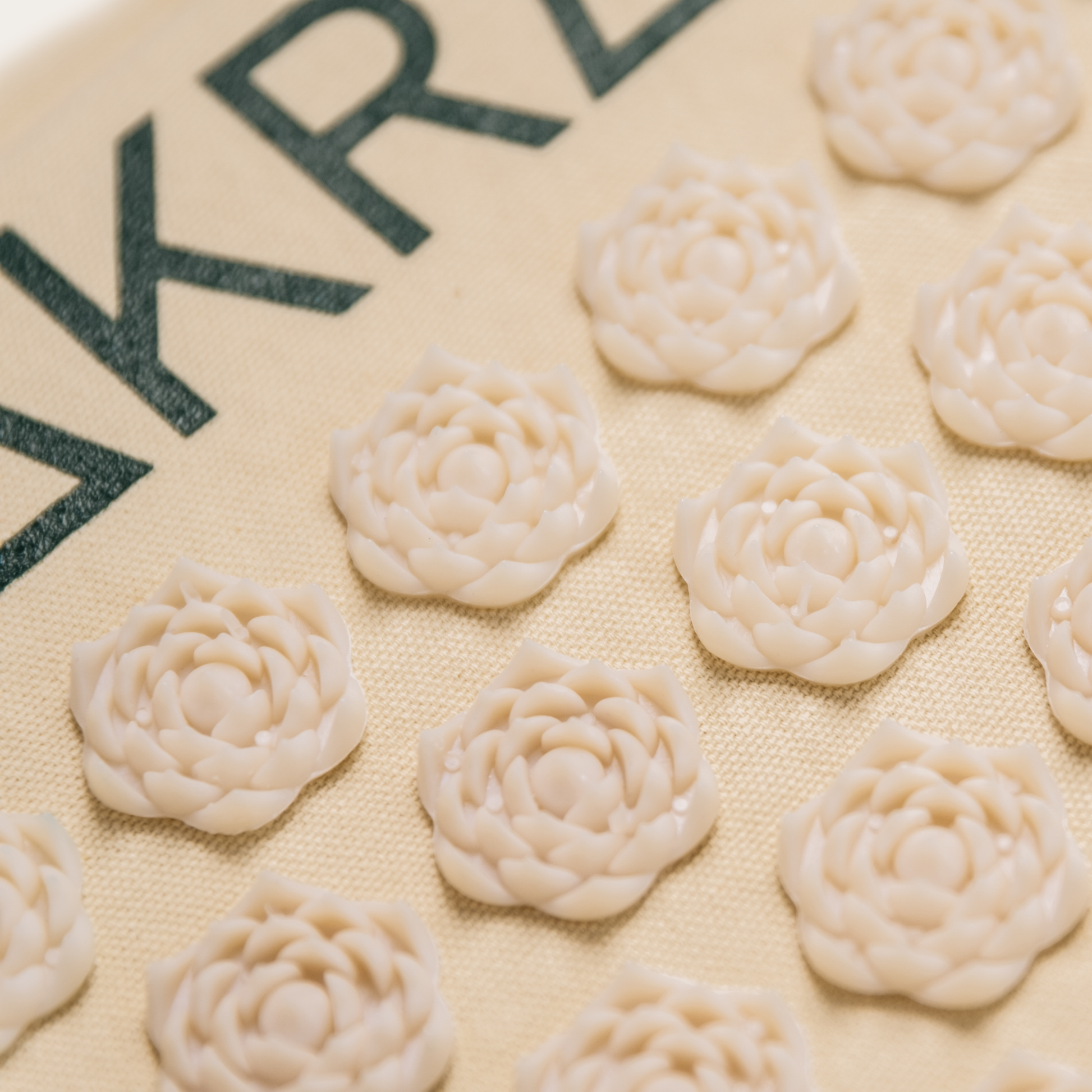 Spikes: Attached with heat bonding to avoid glue the spikes are crafted from recycled ABS plastic.