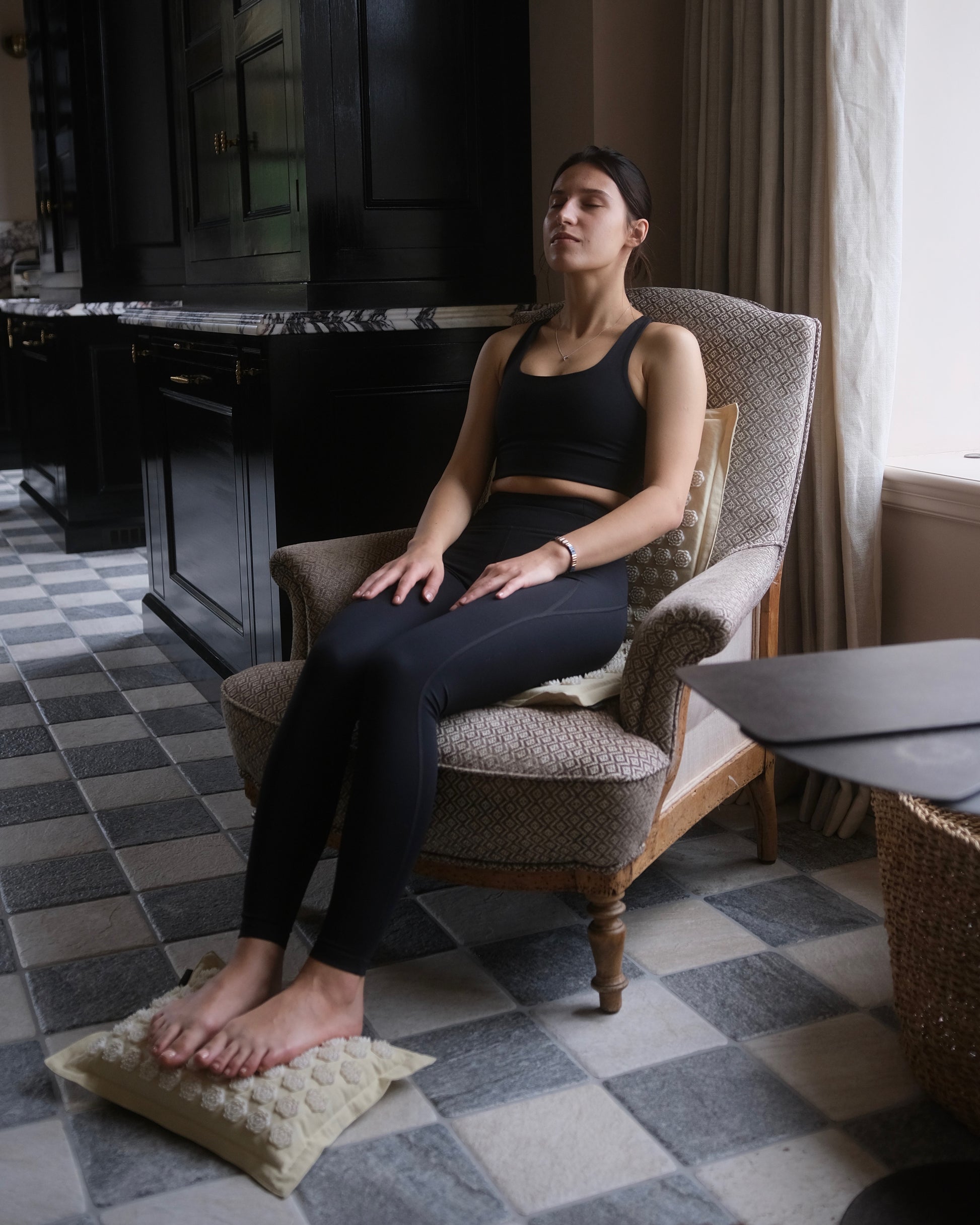 Tummy massage: A tummy massage on your Chakra-mat will promote blood flow to your skin, reducing bloating and helping to keep your mid-section toned. Simply lie with your tummy on the pillow on a firm surface for 5-15 minutes.