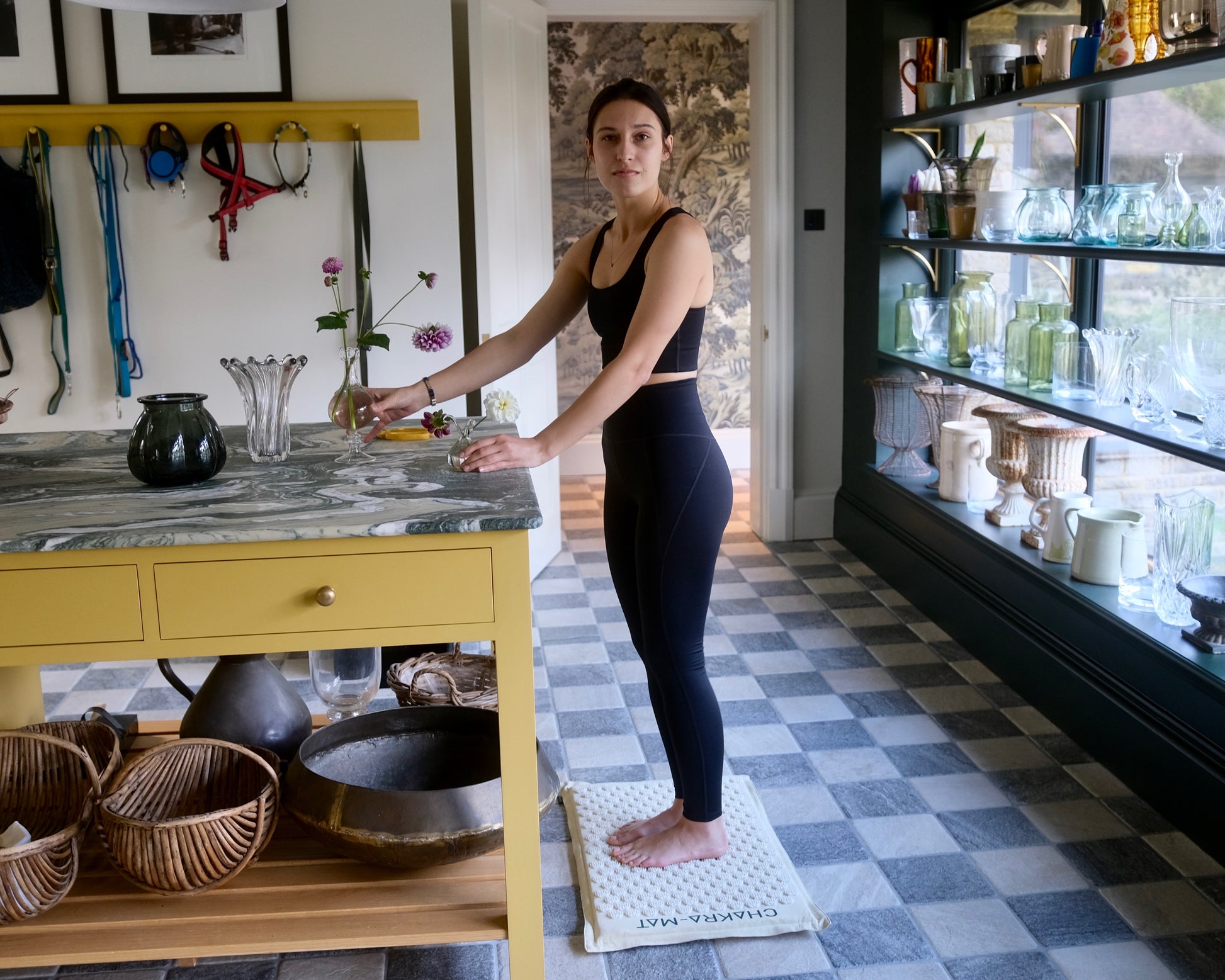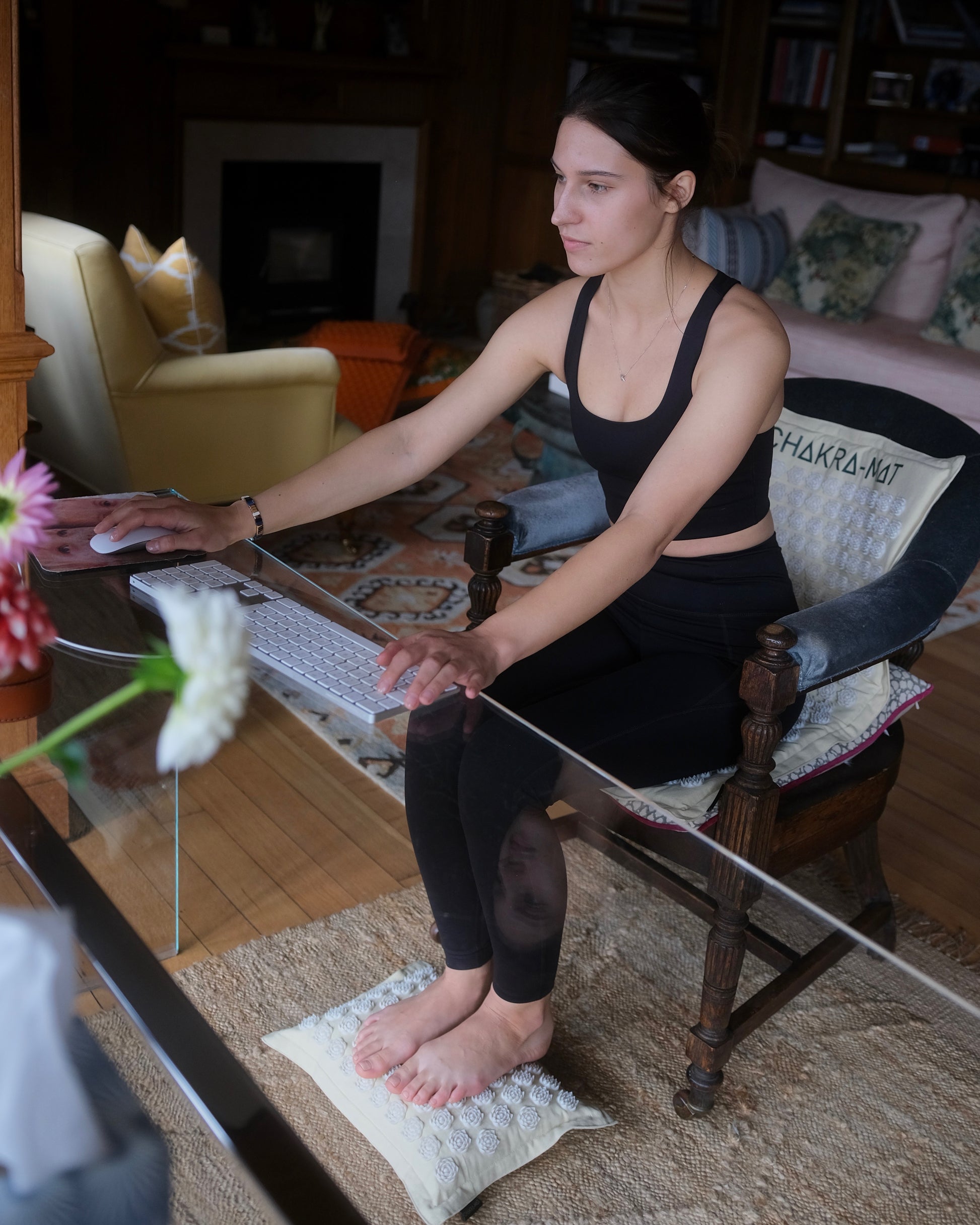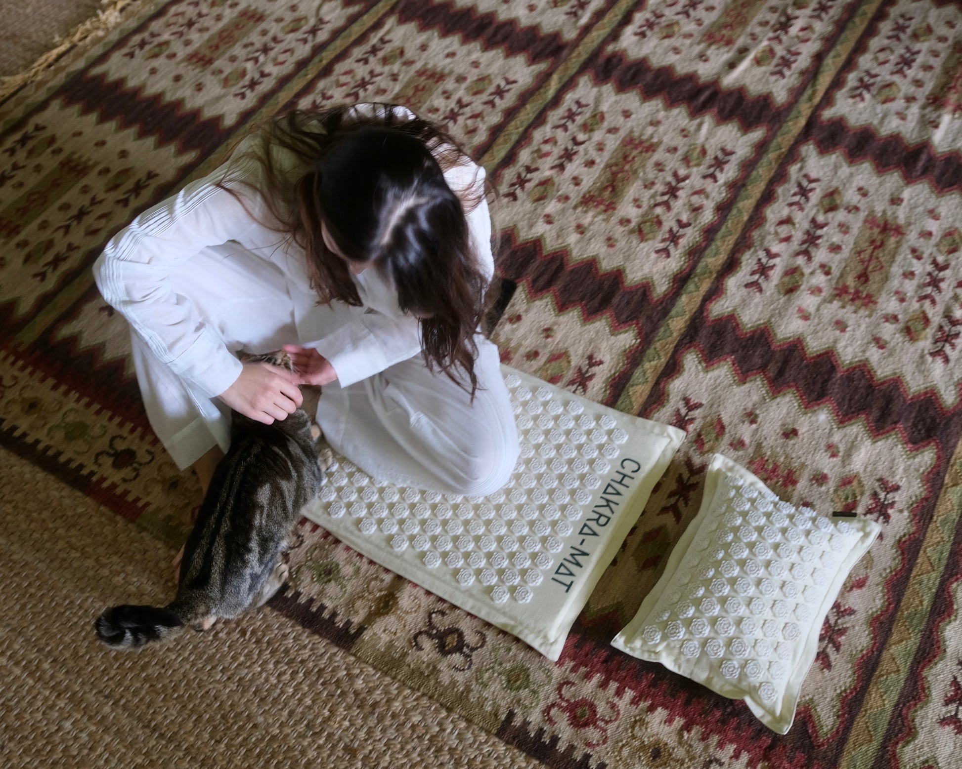Foot massage: A foot massage from your Chakra-mat is a daily essential! Stand at your place or work, the kitchen sink, the stove if cooking risotto or simply close your eyes and be thankful for the day - place your bare feet gently on the pillow ( if you have not used a Chakra-mat before perhaps use clean socks to get used to the beautiful Lotus spikes ). Keep your feet gently pressed for 5-10 minutes and feel your stress slipping away.